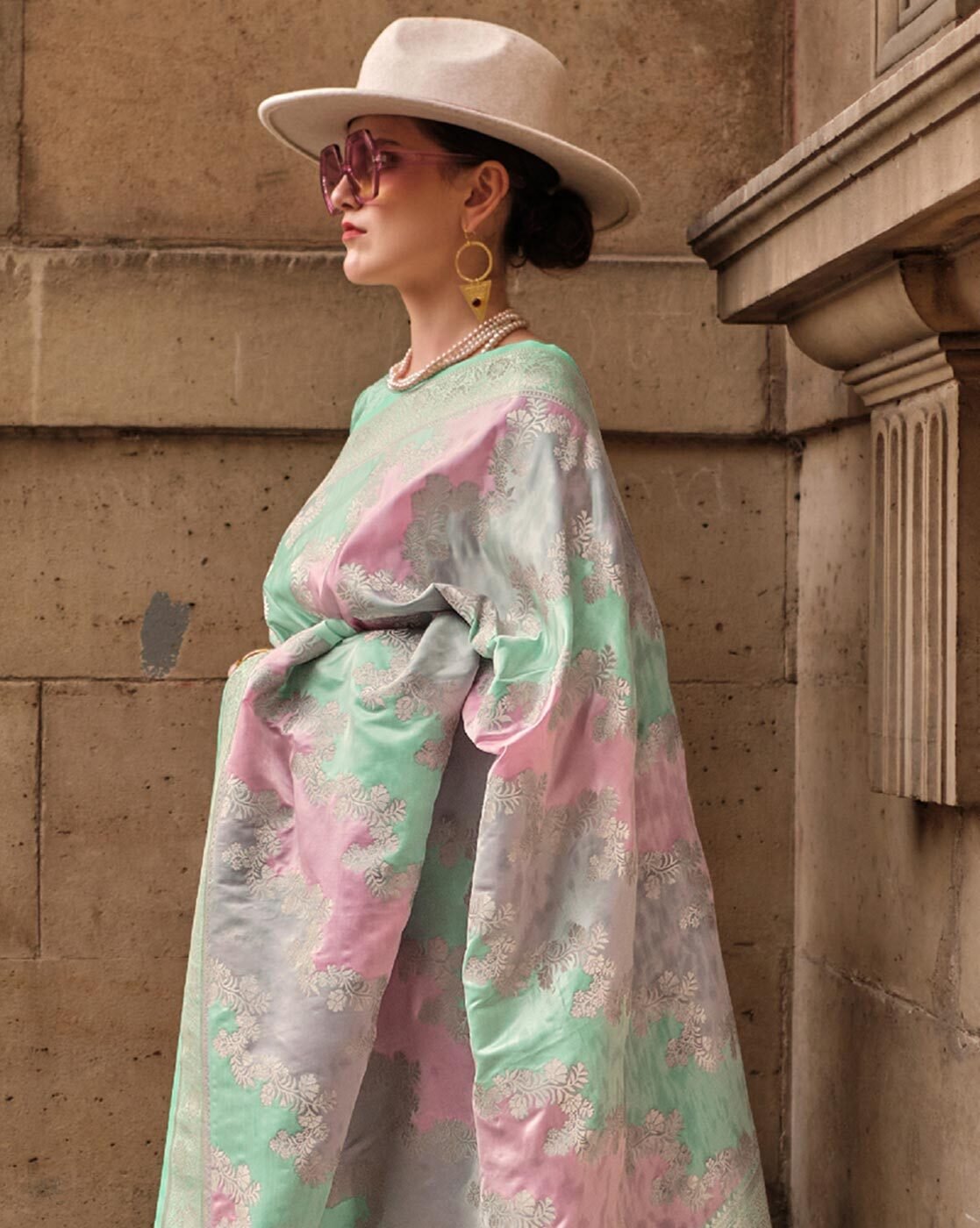 • The last image gives a detailed look of the blouse piece that comes with this saree (The blouse in the images is only for styling purpose)