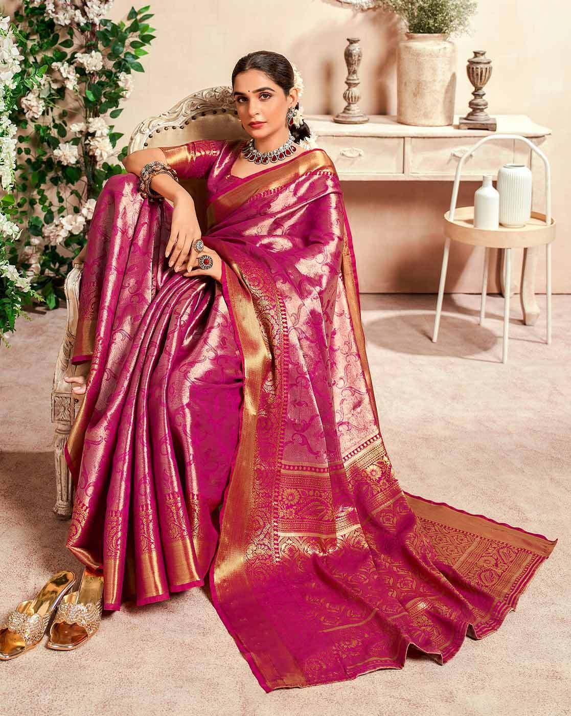 Floral Woven Silk Saree with Zari Border