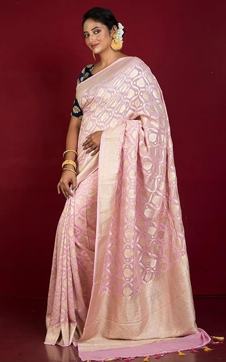 Handwoven Nakshi Floral Brocade Work Self Color Khaddi Georgette Banarasi Saree